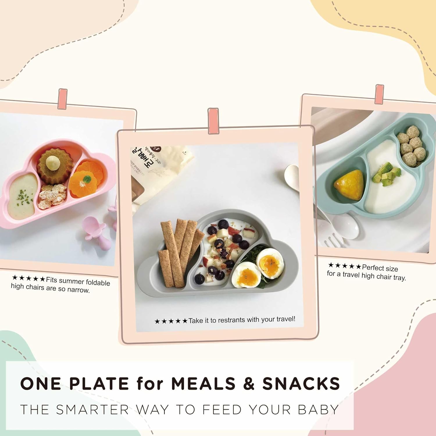 🍱 Multifunctional Design for Happy Meals The three divisions of our suction plate encourage well-balanced meals, and the deep, rounded edges make scooping a breeze. The vibrant pastel colors and adorable cloud shape add an element of fun to mealtime, loved by kids of all ages.
